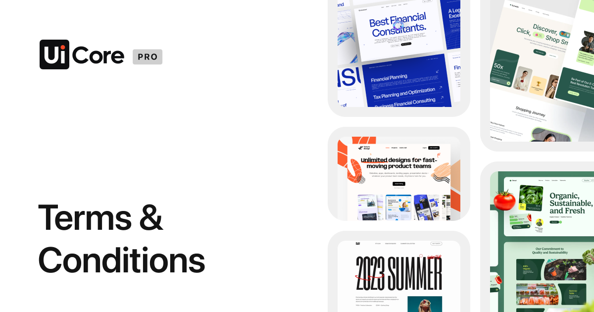 These Terms and Conditions (“Terms,” “Terms and Conditions”) establish the rules governing your interaction with the website https://uicore.pro (the “Service”) operated by UiCore (“us,” “we,” or “our”).